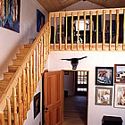 This contemporary retail space combines many traditional design elements to echo the surrounding community. Wood accents on the interior including the wood ceiling with dramatic exposed trusses and elegant staircase and doors bring a traditional warmth and play of light to the inside spaces. Humble and traditional exterior details including the red pitched roofs, high courtyard wall, and wooden gate tie the project to its neighborhood.