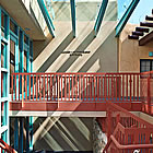 Exhibit areas provide for visiting exhibits as well as permanent displays. There is an open video space amidst the lower level exhibits as well as a high tech auditorium, suitable for viewing films or hosting panel discussions. The main lobby area, with its long window wall looking out on the adjacent Palace of the Governors, is a natural gathering space. It culminates at an atrium to the second floor and the monumental stair connecting all three levels. The second floor also offers a central gathering area, making the museum of place for present day community as well as the telling of history.